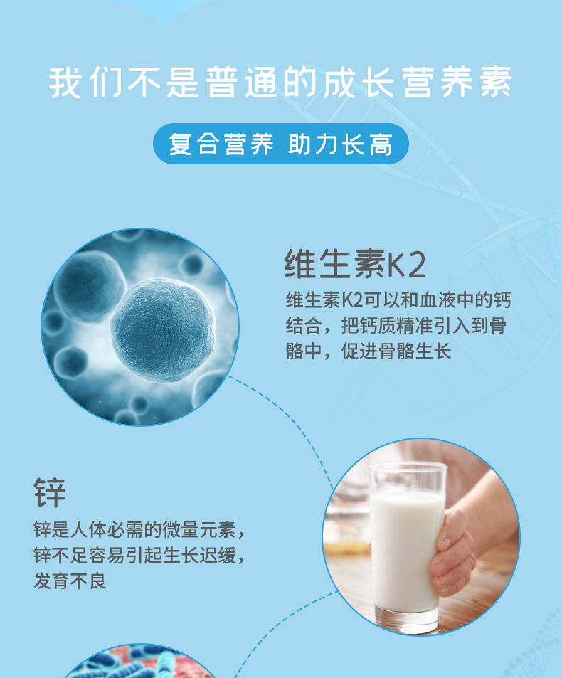 2. 天然乳钙、维生素D和K三种骨激素,促进钙质进入骨骼